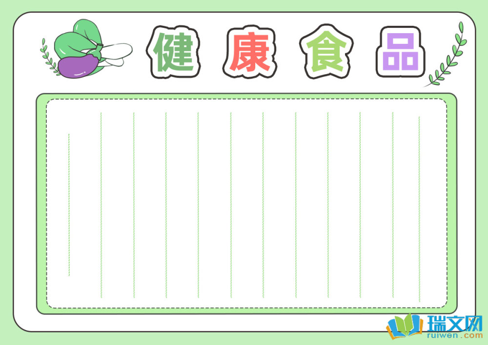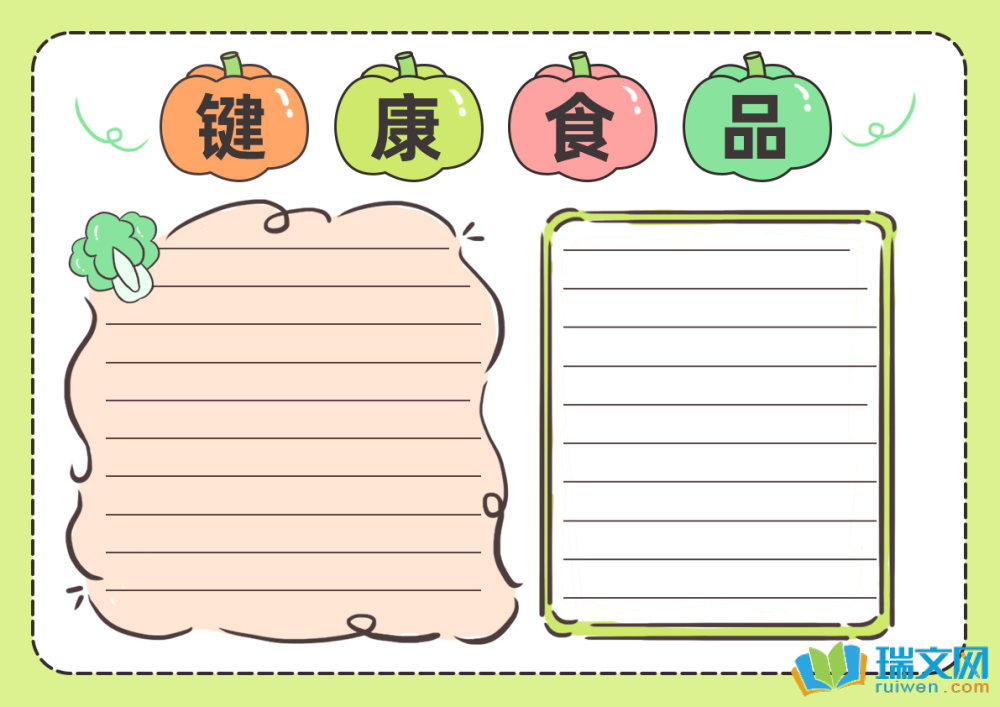 在平時的學習、工作中,大家都聽說過或者使用過手抄報吧,手抄報需要巧妙設(shè)計,精心安排。那么都有哪些類型的手抄報呢?下面是小編收集整理的健康食品手抄報,希望對大家有所幫助。