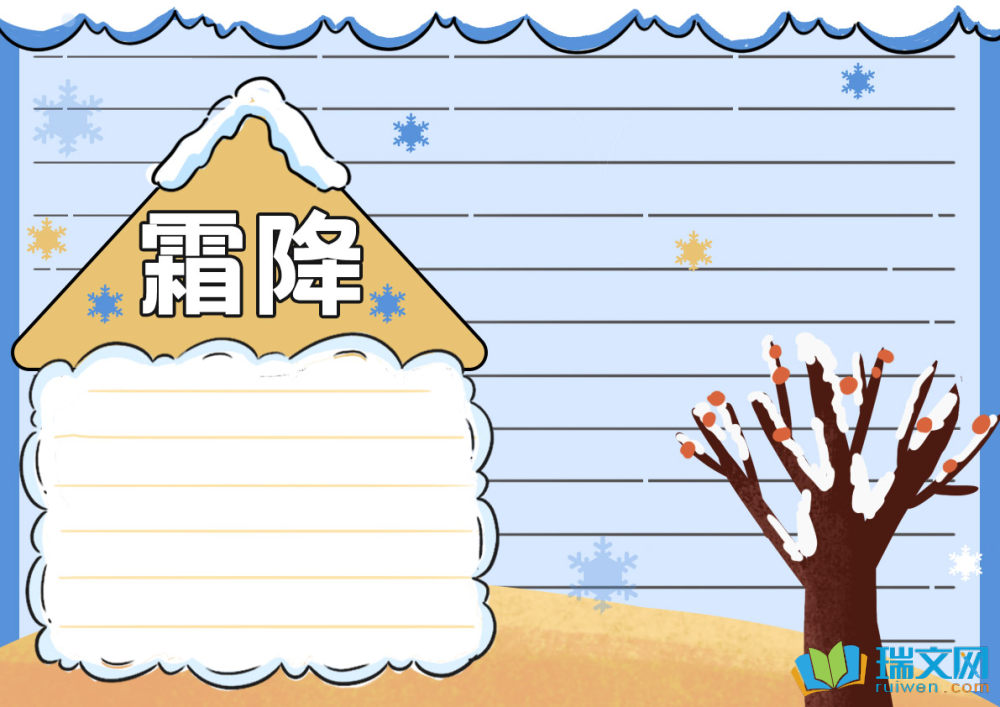 在日復(fù)一日的學(xué)習(xí)、工作生活中,許多人都接觸過一些比較經(jīng)典的手抄報吧,手抄報需要巧妙設(shè)計,精心安排。那么你有真正了解過手抄報嗎?以下是小編為大家整理的霜降為主題的手抄報資料,歡迎大家分享。