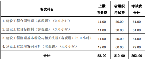 本次考試收費(fèi)標(biāo)準(zhǔn)為:報(bào)名費(fèi)每人10元,《專(zhuān)業(yè)工程管理與實(shí)務(wù)》科目考試費(fèi)為70元,其余兩科考試費(fèi)為每科60元??忌_認(rèn)報(bào)名后,已繳費(fèi)用不予退還。