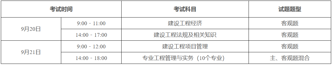 注:《專業(yè)工程管理與實務》科目分為建筑工程、公路工程、鐵路工程、民航機場工程、港口與航道工程、水利水電工程、礦業(yè)工程、市政公用工程、通信與廣電工程、機電工程10個專業(yè),報考人員可根據(jù)工作需要選擇專業(yè)。