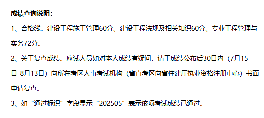 合格線。建設(shè)工程施工管理60分、建設(shè)工程法規(guī)及相關(guān)知識(shí)60分、專業(yè)工程管理與實(shí)務(wù)72分。