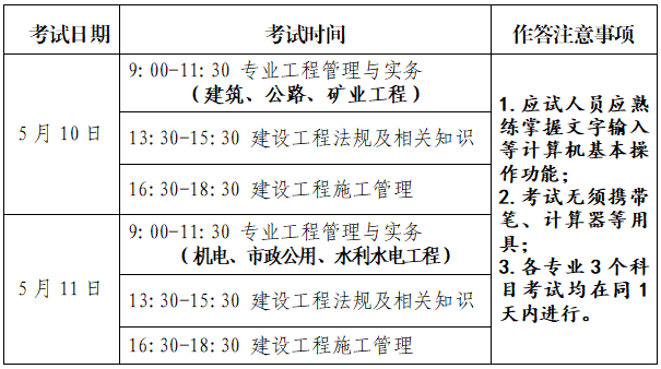 本文鏈接:http://www.bizone66.com/v-118-9250.html2025年寧夏二級建造師考試時間及考試科目:5月10日-11日