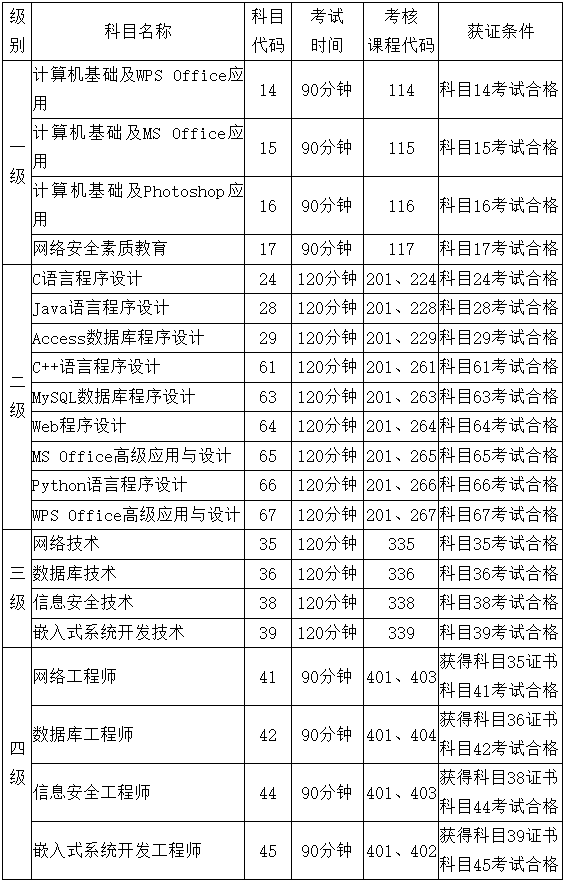 注:二級語言類及數(shù)據庫類科目獲證條件:總分達到60分且選擇題得分達到50%及以上(即選擇題得分要達到20分及以上)的考生方可取得合格證書。