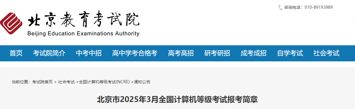 現(xiàn)將北京市2025年3月全國計(jì)算機(jī)等級(jí)考試有關(guān)事項(xiàng)公布如下。