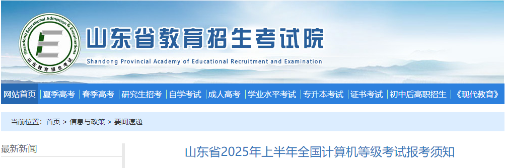 ?。ㄋ模┳?月22日起,請考生關(guān)注山東省教育招生考試院(https://www.sdzk.cn/),查閱《致山東省2025年上半年全國計算機等級考試考生的一封信》,做好考前準備,確保順利參加考試。