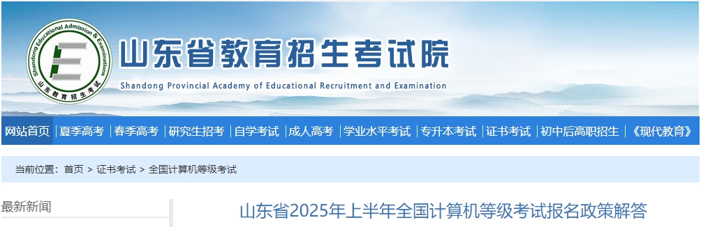 近日,我院發(fā)布了《山東省2025年上半年全國計算機等級考試報考須知》,現(xiàn)針對報名過程中有關(guān)政策解答如下: