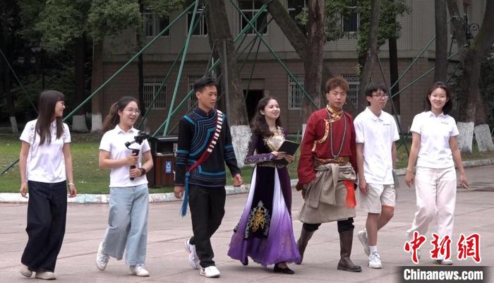 5月15日,多民族“主播團(tuán)”的部分成員在西南民族大學(xué)校園?!£愡x斌 攝