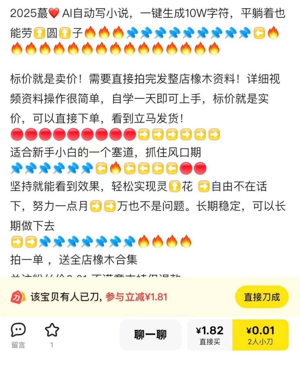 “AI自動寫小說,一鍵生成10萬字符”……在網(wǎng)購平臺上,售賣AI寫作軟件的商品鏈接,價格往往十分低廉。這些記者花了不到3塊錢,就在三家店鋪買到了商品,通過鏈接下載之后,記者發(fā)現(xiàn),有兩家售賣的是同一款寫作軟件,第三家售賣的則是另外一款。