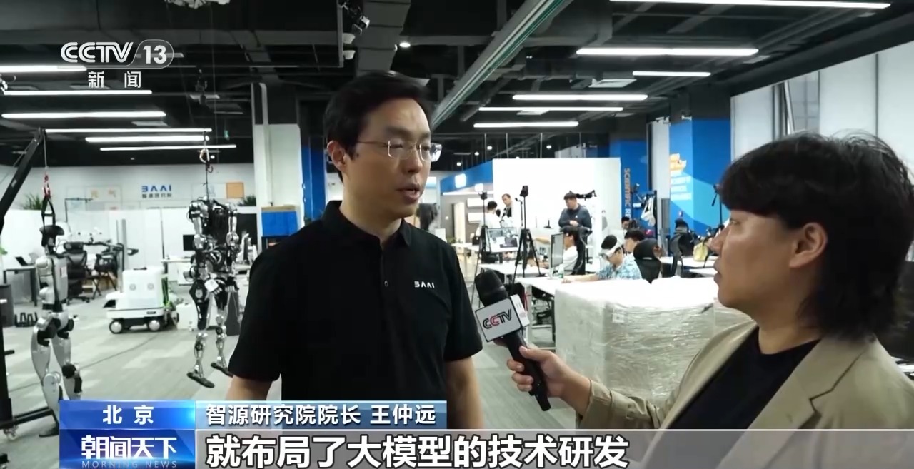 智源研究院院長 王仲遠(yuǎn):我們早在六年前就布局了大模型的技術(shù)研發(fā),在今年我們發(fā)布了“悟界”系列大模型,并且我們將所有的科研成果都進(jìn)行了開源,所以從發(fā)布之后,國內(nèi)非常多的這些機器人公司就主動的聯(lián)系我們,跟我們建立了合作的關(guān)系。
