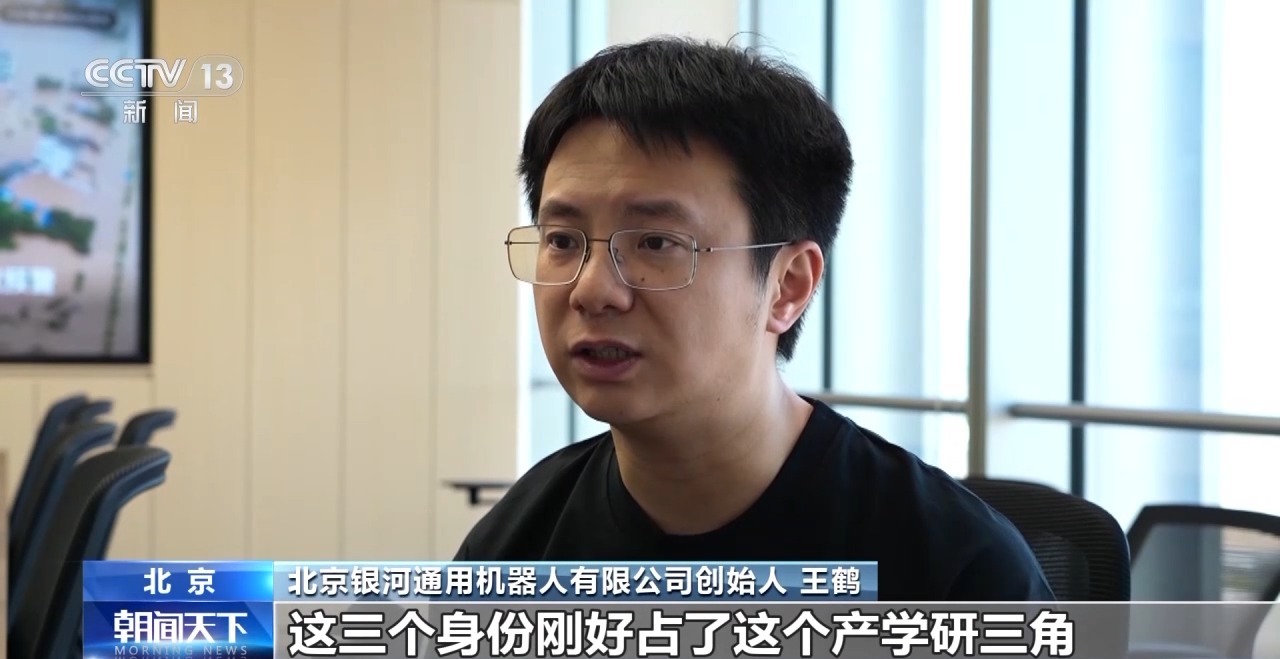 跨學(xué)校、跨學(xué)科、跨領(lǐng)域,記者發(fā)現(xiàn)在智源團隊里,有一個特殊的稱呼叫作“智源學(xué)者”。王鶴,就是智源學(xué)者之一,不過他還有兩個其他身份,北大博士生導(dǎo)師和企業(yè)創(chuàng)始人,他的機器人公司就是由研究院孵化而來。他告訴記者,產(chǎn)業(yè)與研究之間的這堵高墻是大模型發(fā)展的一大挑戰(zhàn),而這樣的多重身份就給了他不少助力。
