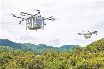 在現(xiàn)代物流和冷鏈技術(shù)加持下,依托航空運(yùn)輸優(yōu)勢,荔枝從廣州直送西安,只需兩個小時。目前,這條“飛機(jī)+冷鏈”的“荔枝飛路”已經(jīng)覆蓋全國約2800個縣域,剛下枝頭的荔枝次晨或者隔日便可送到消費(fèi)者手中,身在各地都能享受幾乎與嶺南無異的鮮美荔枝。圖為6月28日,在廣州市從化區(qū)天人山水荔枝園,物流無人機(jī)運(yùn)輸剛剛采摘的荔枝。新華社記者 劉大偉攝