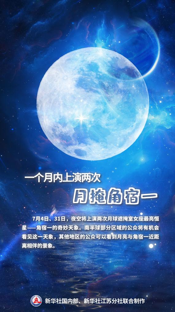 7月4日、31日,夜空將上演兩次月球遮掩室女座最亮恒星——角宿一的奇妙天象。南半球部分區(qū)域的公眾將有機會看見這一天象,其他地區(qū)的公眾可以看到月亮與角宿一近距離相伴的景象。