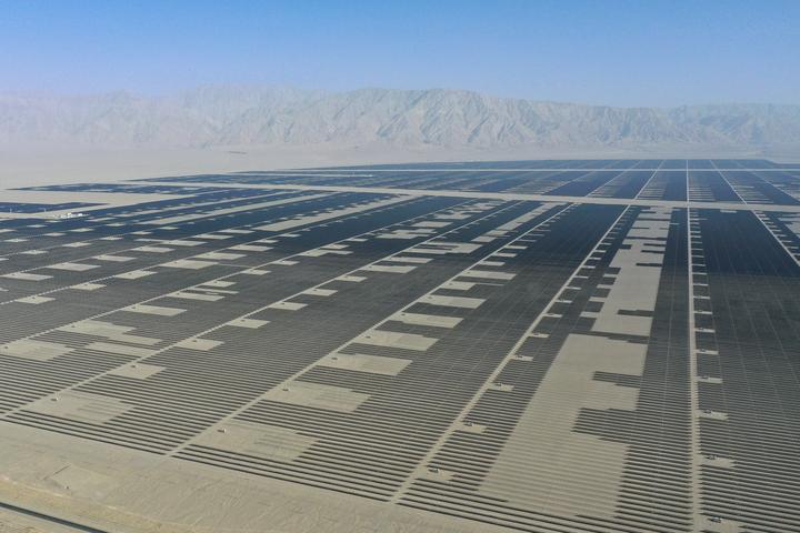 這是6月26日拍攝的中國(guó)綠發(fā)新疆中綠電若羌400萬(wàn)千瓦光伏項(xiàng)目(無(wú)人機(jī)照片)。 新華社記者 丁磊 攝