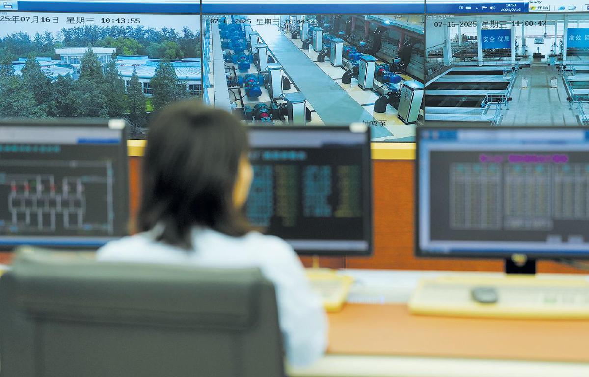 7月16日,第九水廠中心控制室實(shí)時(shí)顯示智慧水務(wù)平臺(tái)及時(shí)掌握每日供水量,分析供水量變化趨勢。攝影/新京報(bào)記者 李木易
