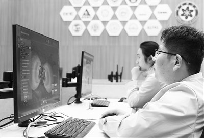 在位于北京懷柔的子午工程綜合信息與運(yùn)控中心,科研人員在監(jiān)測(cè)運(yùn)行情況。