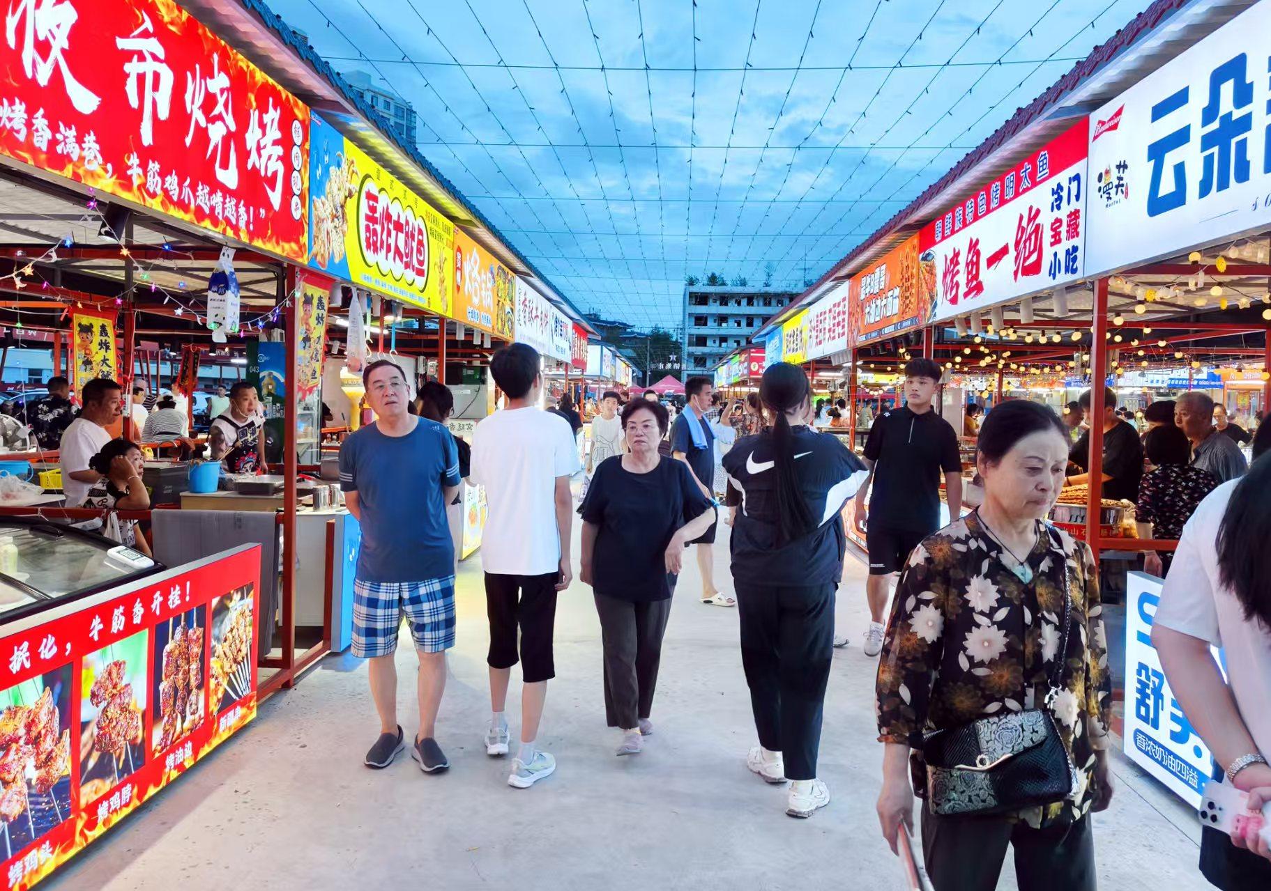 夜市“火”起來:延北夜市花樣翻新挑戰(zhàn)食客味蕾;新村夜市涵蓋餐飲、娛樂、購物等多業(yè)態(tài);供銷市集打造開放式公共就餐區(qū),讓游客告別端碗站立的倉促,舒適度十足;民俗園美食街的五彩集裝箱、點(diǎn)點(diǎn)彩燈,搭配花車、LED屏、音樂與卡通陳設(shè),將街區(qū)裝扮得潮流時尚,洋溢著青春氣息。
