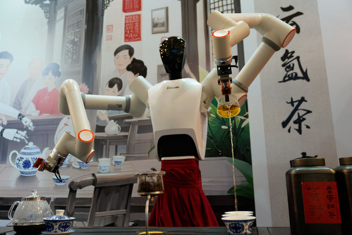 2025年5月31日,在第九屆中國成都國際非物質(zhì)文化遺產(chǎn)節(jié)上,機器人茶藝師表演茶藝。qxQ萬博士范文網(wǎng)-您身邊的范文參考網(wǎng)站Vanbs.com