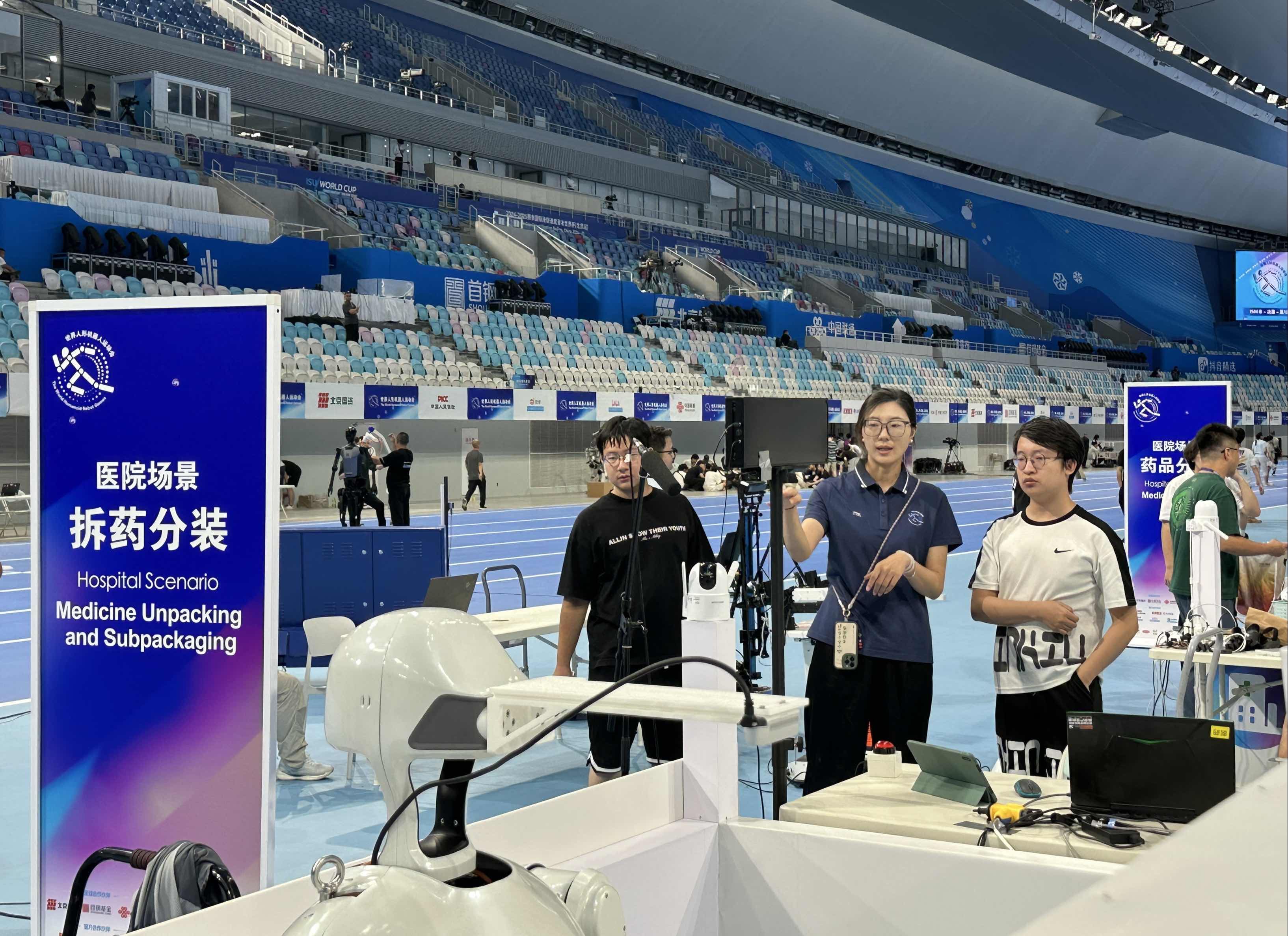 第一次做機器人比賽裁判,喬艷潔跟著團隊做了幾次培訓(xùn),也了解了很多機器人相關(guān)知識,“每個隊伍對機器人建模、調(diào)控等需要花大量時間去調(diào)試,才能很精準地把藥片剝離出來,這一點很不容易。”