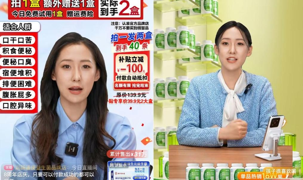 直播帶貨中存在的一些問題,消費(fèi)提示至少給出了一些“避坑”辦法,但還有一些問題,比如利用話術(shù)去營(yíng)造緊張氛圍,消費(fèi)者似乎根本無從應(yīng)對(duì)。但有些營(yíng)銷話術(shù)難辨真假,還有的則百分百是在忽悠。記者輾轉(zhuǎn)于各家?guī)ж浿辈ラg時(shí),有時(shí)會(huì)出現(xiàn)一種“既視感”,總覺得這個(gè)直播間主播的臉有些熟悉。對(duì)比后才發(fā)現(xiàn),有些直播間,用的就是長(zhǎng)相完全一樣的同款A(yù)I數(shù)字人,只不過賣的東西并不一樣而已。