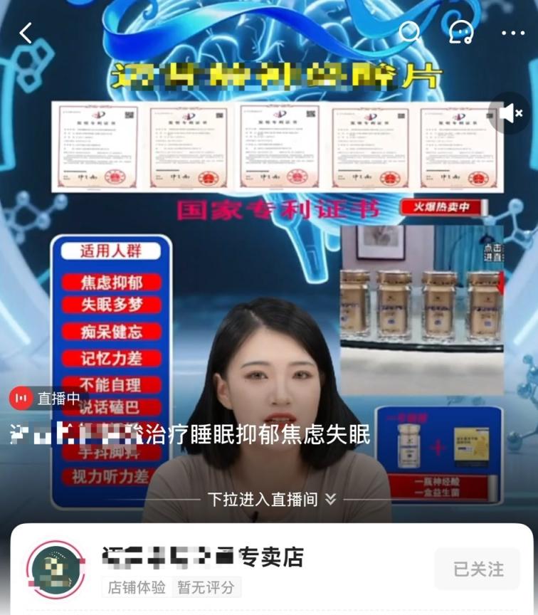 “XX牌神經(jīng)酸,治療抑郁焦慮失眠……”一個(gè)直播間的標(biāo)題如此寫道,作為保健食品,這樣的說法顯然已經(jīng)違背了《廣告法》中,“保健食品廣告不能涉及疾病預(yù)防、治療功能”的要求。更為離譜的是,記者在市場(chǎng)監(jiān)督管理總局的特殊食品信息查詢平臺(tái),輸入這款產(chǎn)品的信息,無論是品牌名還是“神經(jīng)酸”,都沒有對(duì)應(yīng)的產(chǎn)品信息。