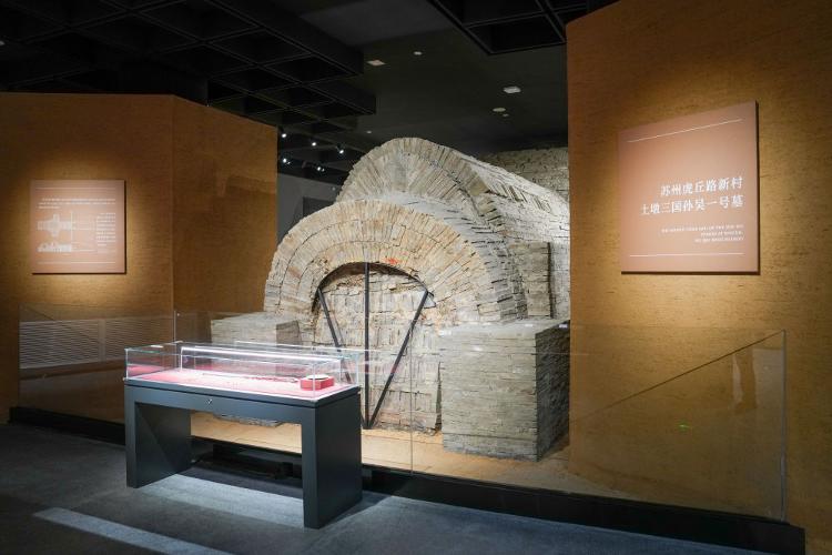 這是5月15日在蘇州考古博物館拍攝的蘇州虎丘路新村土墩三國孫吳一號墓。 新華社記者 李博 攝